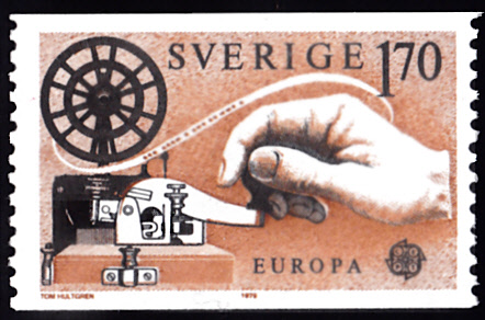 In Schweden erschienen die Europamarken 1979 zum Gemeinschaftsthema "Geschichte des Post- und Fernmeldewesens" am 7. Mai 1979. Hier die Marke zu 1,70 Kronen mit der Abbildung einer Hand bei der Bedienung eines Morseapparates. Die Auflage betrug 7 586 000 Stück.