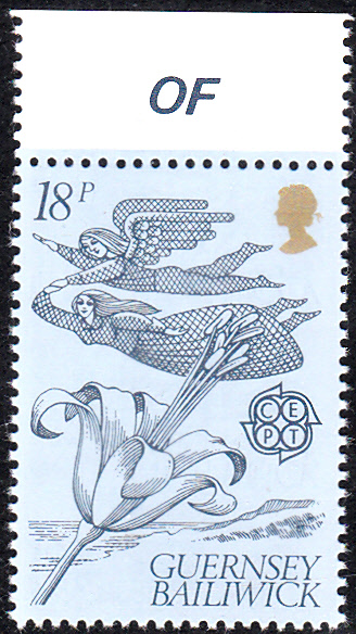 Auf Guernsey erschienen die Europamarken 1981 zum Gemeinschaftsthema "Folklore" am 22. Mai 1981. Hier der Wert zu 18 Pence mit einer Abbildung der Guernsey-Lilie (Nerine sarniensis), die der Legende nach von Feen gebracht wurde. Die Auflage betrug 1 937 023 Stück.