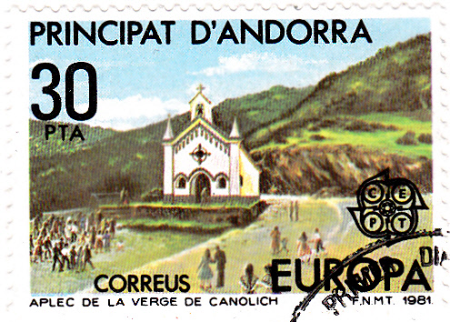 In Andorra erschienen bei der spanischen Post die Europamarken 1981 zum Gemeinschaftsthema "Folklore" am 7. Mai 1981. Hier ein Exemplar der Marke zu 30 Peseta mit der Abbildung zur Feier der Madonna von Canòlich. Die Auflage betrug 1 099 040 Stück.