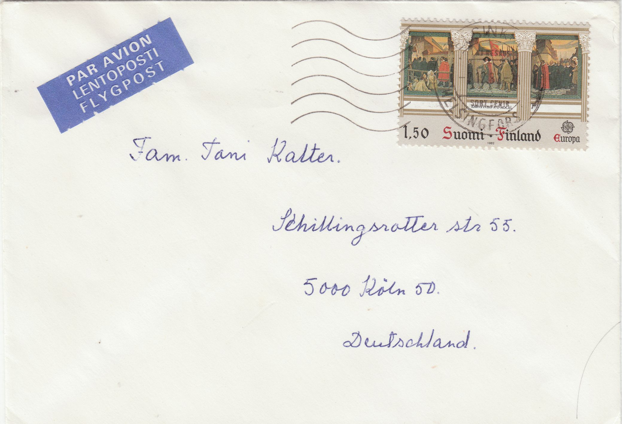 EF der finnischen Europamarke 1982 auf Brief nach Deutschland: