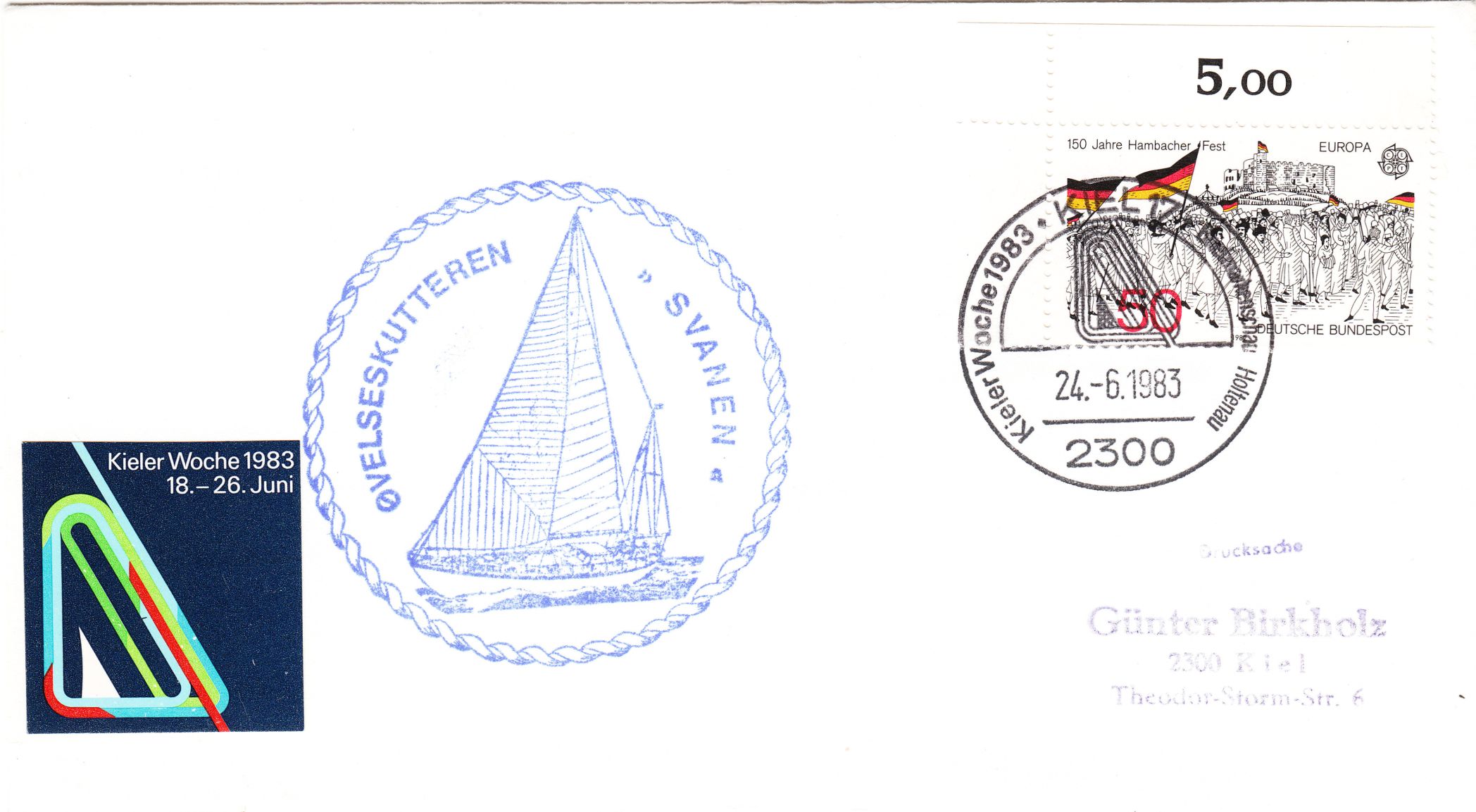 Eckrand 1 als EF auf Drucksache am 24.06.1983 als Gruß von der Kieler Woche: