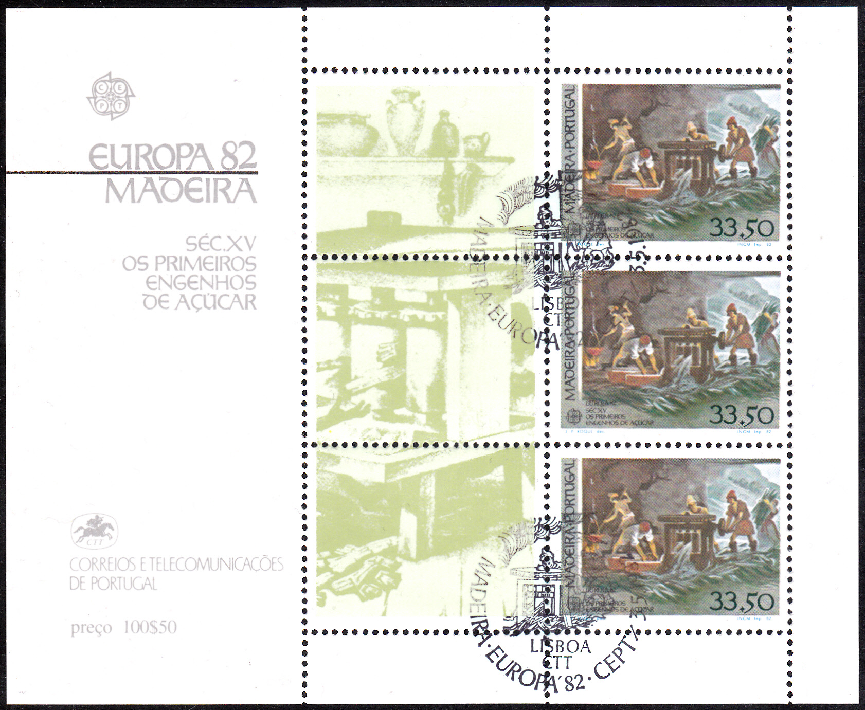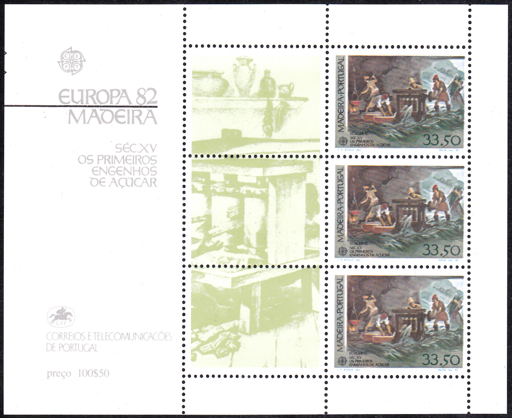 Die Europamarke 1982 erschien in Portugal Madeira am 3. Mai 1982 auch als Block mit drei Marken zu 33,50 Escudo. Die Auflage betrug 550 000 Blocks.