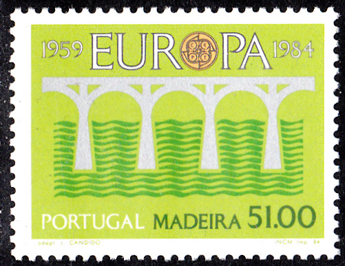 In Portugal Madeira erschien eine Europamarke 1984 anlässlich dem Jubiläum "25 Jahre Europäische Konferenz der Verwaltungen für das Post- und Fernmeldewesen (CEPT)" im einheitlichen Motiv "Brücke" am 2. Mai 1984. Hier diese Marke zu 51,00 Escudo, die in einer Auflage von 600 000 Stück erschien.