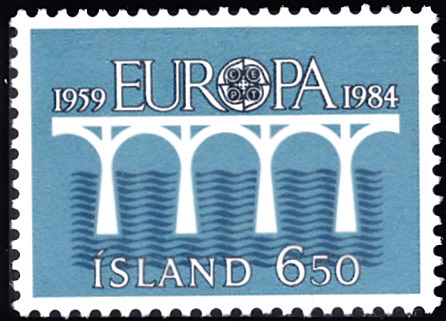 In Island erschienen die Europamarken 1984 anlässlich dem Jubiläum "25 Jahre Europäische Konferenz der Verwaltungen für das Post- und Fernmeldewesen (CEPT)" im einheitlichen Motiv "Brücke" am 3. Mai 1984. Hier die Marke zu 6,50 Kronen, die in einer Auflage von 2 000 000 Stück erschien.
