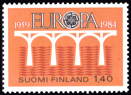 In Finnland erschienen die Europamarken 1984 anlässlich dem Jubiläum "25 Jahre Europäische Konferenz der Verwaltungen für das Post- und Fernmeldewesen (CEPT)" im einheitlichen Motiv "Brücke" am 7. Mai 1984. Hier die Marke zu 1,40 Mark, die in einer Auflage von 8 000 000 Stück erschien.