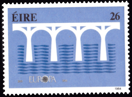 In Irland erschienen die Europamarken 1984 anlässlich dem Jubiläum "25 Jahre Europäische Konferenz der Verwaltungen für das Post- und Fernmeldewesen (CEPT)" im einheitlichen Motiv "Brücke" am 10. Mai 1984. Hier die Marke zu 26 Pence, die in einer Auflage von 1 500 000 Stück erschien.