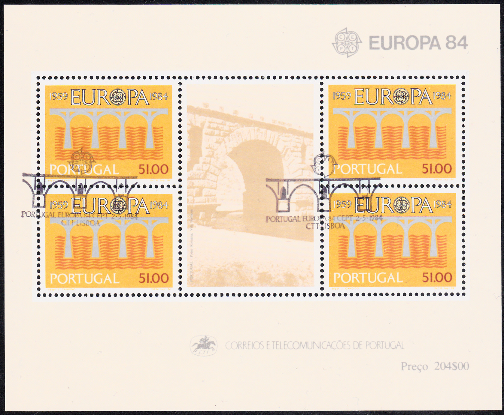 Die Europamarke 1984 erschien in Portugal am 2. Mai 1983 auch als Block mit vier Marken zu 51,00 Escudo. Die Auflage betrug 300 000 Blocks.