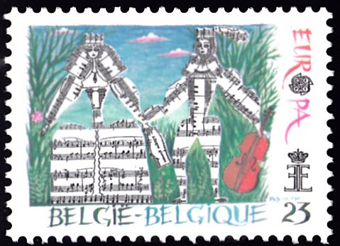 In Belgien erschienen die Europamarken 1985 zum Gemeinschaftsthema "Europäisches Jahr der Musik" am 11. Mai 1985. Hier die Marke zu 23 Franc mit einer Darstellung zum Musikwettbewerb "Königin Elisabeth". Diese Marke hat eine Auflage von 2 318 408 Stück.