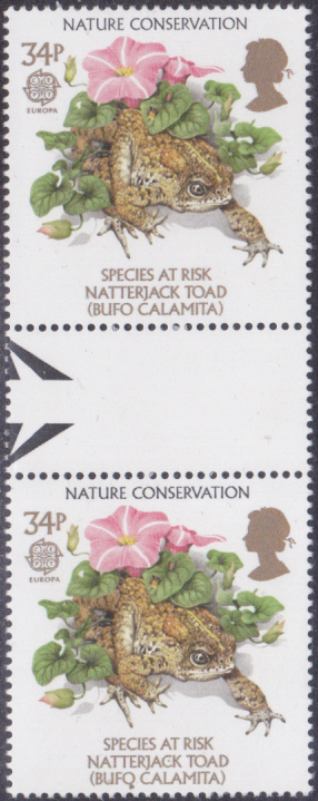 In Großbritannien erschienen die Europamarken 1986 am 20. Mai 1986 zum Gemeinschaftsthema "Natur- und Umweltschutz". Hier die Marke zu 34 Pence mit einer Kreuzkröte (Bufo calamita). Die Auflage dieser Marke betrug 6 022 000 Stück.