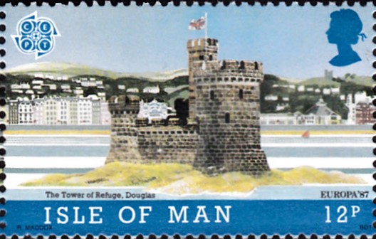 In Großbritannien-Isle of Man erschienen die Europamarken 1987 zum Gemeinschaftsthema "Moderne Architektur" am 29. April 1987. Hier eine Marke zu 12 Pence mit dem Zufluchtsturm in Douglas.