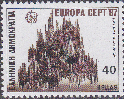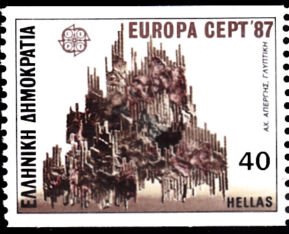 In Griechenland erschienen die Europamarken 1987 am 4. Mai 1987 zum Gemeinschaftsthema "Moderne Architektur". Hier eine Marke zu 40 Drachmen mit der Abbildung einer Plastik von Achilleas Apergis (1909-1986). Hier zeige ich eine nur senkrecht gezähnte Marke aus einem Markenheftchen (MiNr 1651 C). Die Auflage dieser Markenvariante aus dem Markenheftchen (MiNr MH 6) beträgt 300 000 Stück.