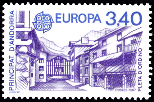 Bei der Französischen Post in Andorra erschienen die Europamarken 1987 zum Gemeinschaftsthema "Moderne Architektur" am 2. Mai 1987. Hier die Marke zu 3,40 Francs mit dem Wintersportzentrum Pleta d’ Ordino. Die Marke hatte eine Auflage von 315 135 Stück.