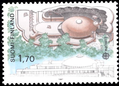 In Finnland erschienen die Europamarken 1987 zum Gemeinschaftsthema "Moderne Architektur" am 15. Mai 1987. Hier die Marke zu 1,70 Mark mit der Stadtbibliothek "Metso" in Tampere (von Raili, geb.1926) und Reima Pietilä (1923-1993), Architekten). Die Marke hatte eine Auflage von 8 000 000 Stück.