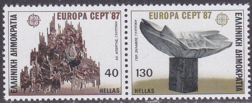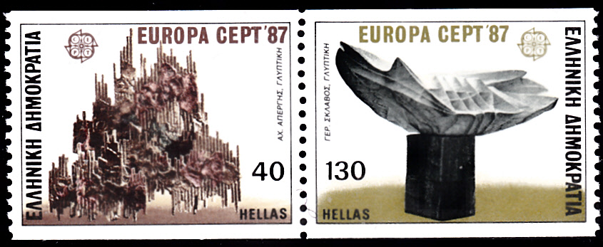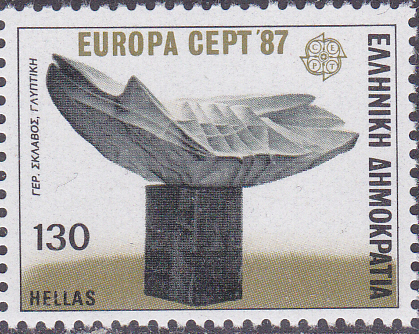 In Griechenland erschienen die Europamarken 1987 am 4. Mai 1987 zum Gemeinschaftsthema "Moderne Architektur". Hier eine Marke zu 130 Drachmen mit dem "Delphischen Licht", einer Thermoskulptur von Gerassimos Sklavos (1927-1967). Hier zeige ich eine nur senkrecht gezähnte Marke aus einem Markenheftchen (MiNr 1652 C). Die Auflage dieser Markenvariante aus dem Markenheftchen (MiNr MH 6) beträgt 300 000 Stück.