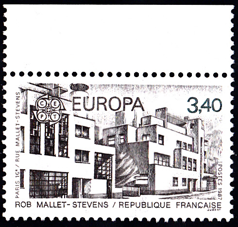 In Frankreich erschienen die Europamarken 1987 zum Gemeinschaftsthema "Moderne Architektur" am 25. April 1987. Hier die Marke zu 3,40 Fr mit der Abbildung eines Wohngebäudes in Paris von Robert Mallet-Stevens (1886-1945, Architekt). Die Marke erschien in einer Auflage von 5 344 668 Stück.
