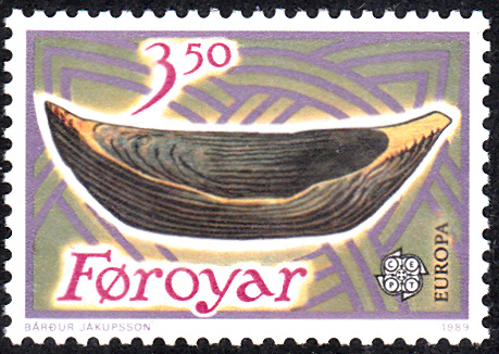 Auf den Färöer-Inseln erschienen die Europamarken 1989 zum Gemeinschaftsthema " Kinderspiele" am 10. April 1989. Hier die Marke zu 3,50 Kronen mit der Abbildung eines Holzschiffes. Die Auflage betrug 961 000 Stück.
