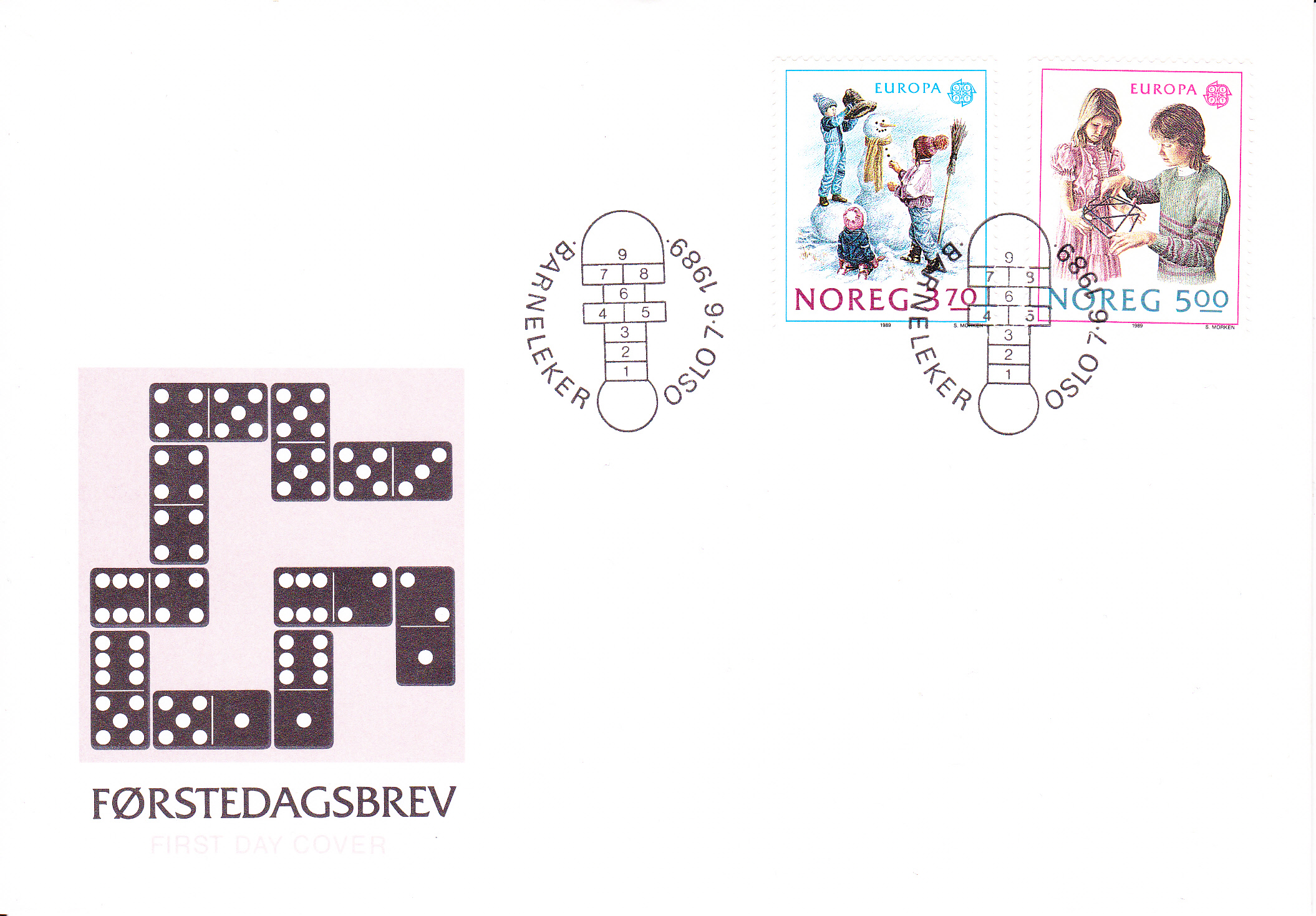 In Norwegen erschienen die Europamarken 1989 zum Gemeinschaftsthema " Kinderspiele" am 7. Juni 1989. Hier die Marke zu 5,00 Kronen mit einer Abbildung beim "Fadenspiel". Die Auflage dieser Marke betrug 3 047 478 Stück.