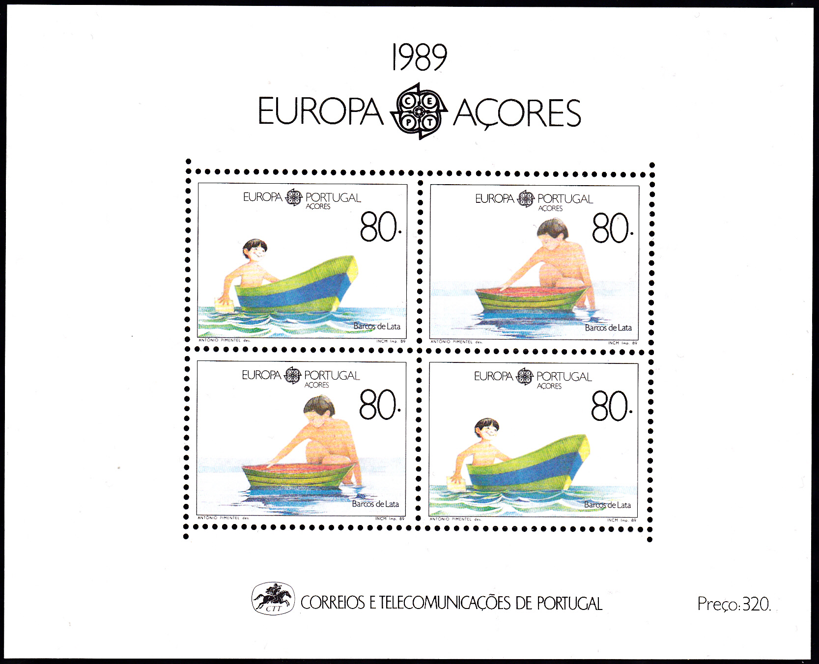 Die Europamarke aus Portugal Azoren (MiNr 401) zu 80,00 Escudo mit der Abbildung eines Jungen in einem Boot erschien zusammen mit einer zweiten Marke zu 80,00 (MiNr 402) mit einem Junge der mit einem Boot spielt am 26.4.1989 auch in einem Block. Die Auflage des Blockes betrug 180 000 Stück.