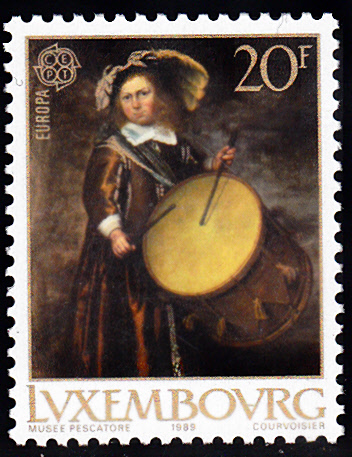 In Luxemburg erschienen die Europamarken 1989 zum Gemeinschaftsthema "Kinderspiele" am 8. März 1989. Hier die Marke zu 20 Franc mit der Abbildung "Kind mit Trommel" nach einem Gemälde eines unbekannten Meisters (19. Jh.). Die Auflage betrug 700 000 Stück.