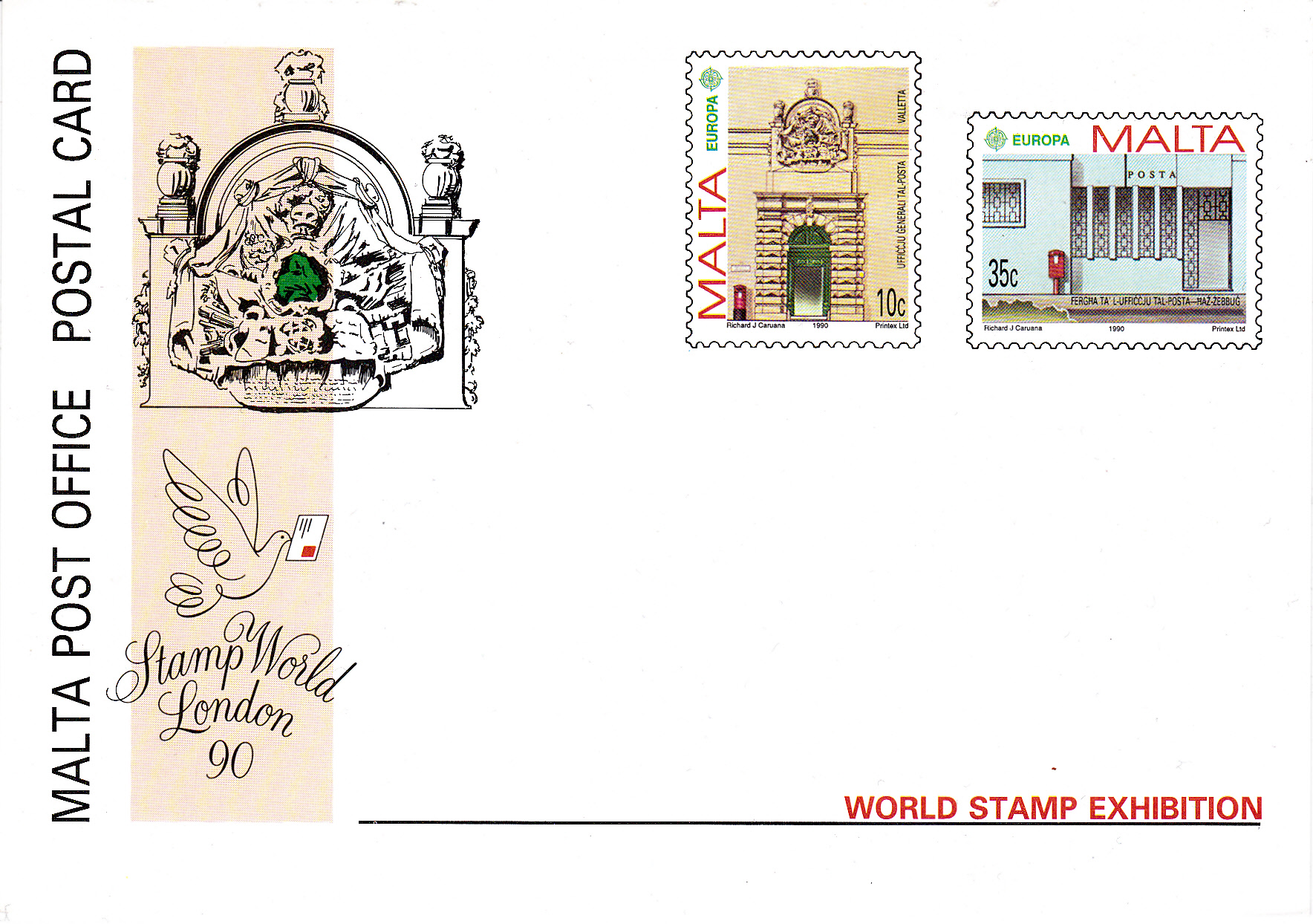 Zur Internationalen Briefmarken-Ausstellung 1990 in London erschien eine Postkarte mit einem Wertstempel der Europamarken zu 10 Cent und dem der Marke zu 35 Cent.