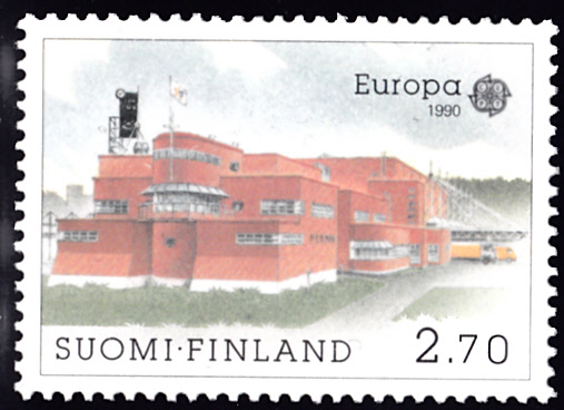 Die Europamarken 1990 sind in Finnland zum Gemeinschaftsthema "Postalische Einrichtungen" am 25. März 1990 erschienen. Hier die Marke zu 2,70 Mark mit der Abbildung des Hauptpostamtrs in Turku. Die Auflage der Marke betrug 4 000 000 Stück.