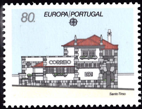 Die Europamarken 1990 sind in Portugal zum Gemeinschaftsthema "Postalische Einrichtungen" am 11. April 1990 erschienen. Hier eine Marke zu 80 Escudo mit der Abbildung des Postamtes Santo Tirso. Die Auflage der Marke betrug 600 000 Stück.