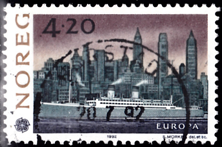 Die Europamarken 1992 aus Norwegen zum Gemeinschaftsthema "500. Jahrestag der Entdeckung von Amerika" sind am 21. April 1992 erschienen. Hier die Marke zu 4,20 Kronen mit einer Abbildung des Passagierschiffes "Stavangerfjord" aus demJ ahre 1918. Die Auflage der Marke betrug 5 907 403 Stück.