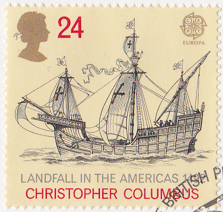 Die Europamarken 1992 aus Großbritannien zum Gemeinschaftsthema "500. Jahrestag der Entdeckung von Amerika" sind am 7. April 1992 erschienen. Hier die Marke zu 24 Pence mit dem Flaggschiff "Santa Maria" von Christoph Kolumbus (1451-1506, spanisch-italienischer Seefahrer). Die Auflage der Marke betrug 22.089.700 Stück.