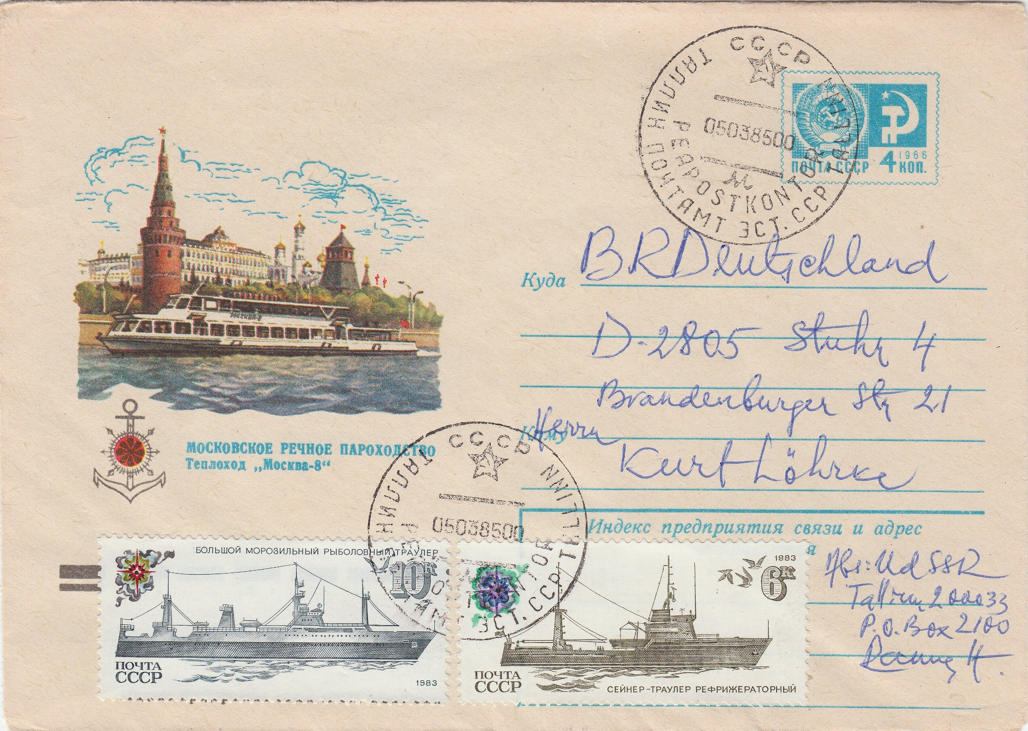 Diese Ganzsache zeigt eine Abbildung der Москвa-8, einem Ausflugsschiff der Moskau-Klasse: