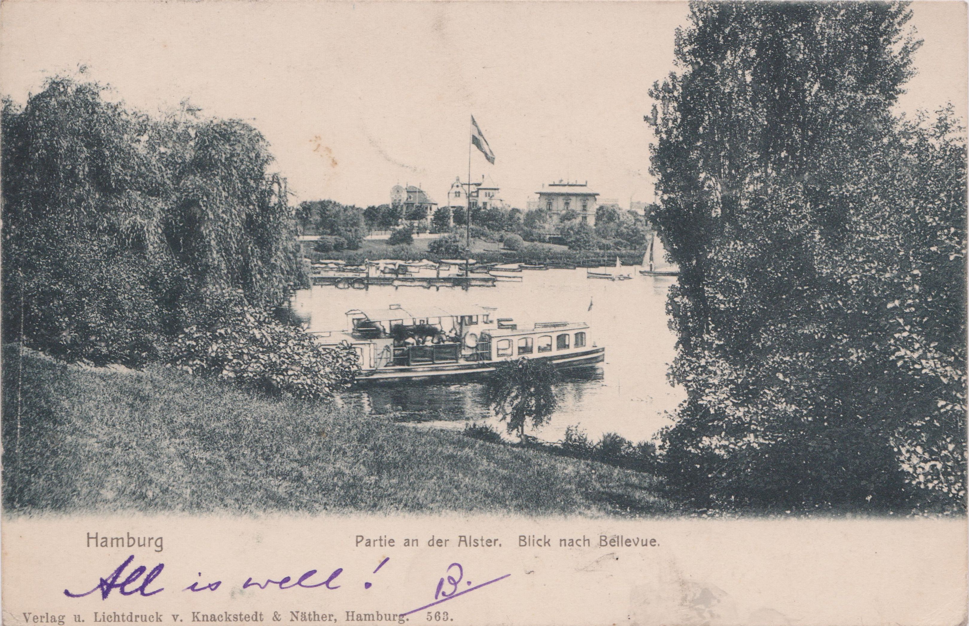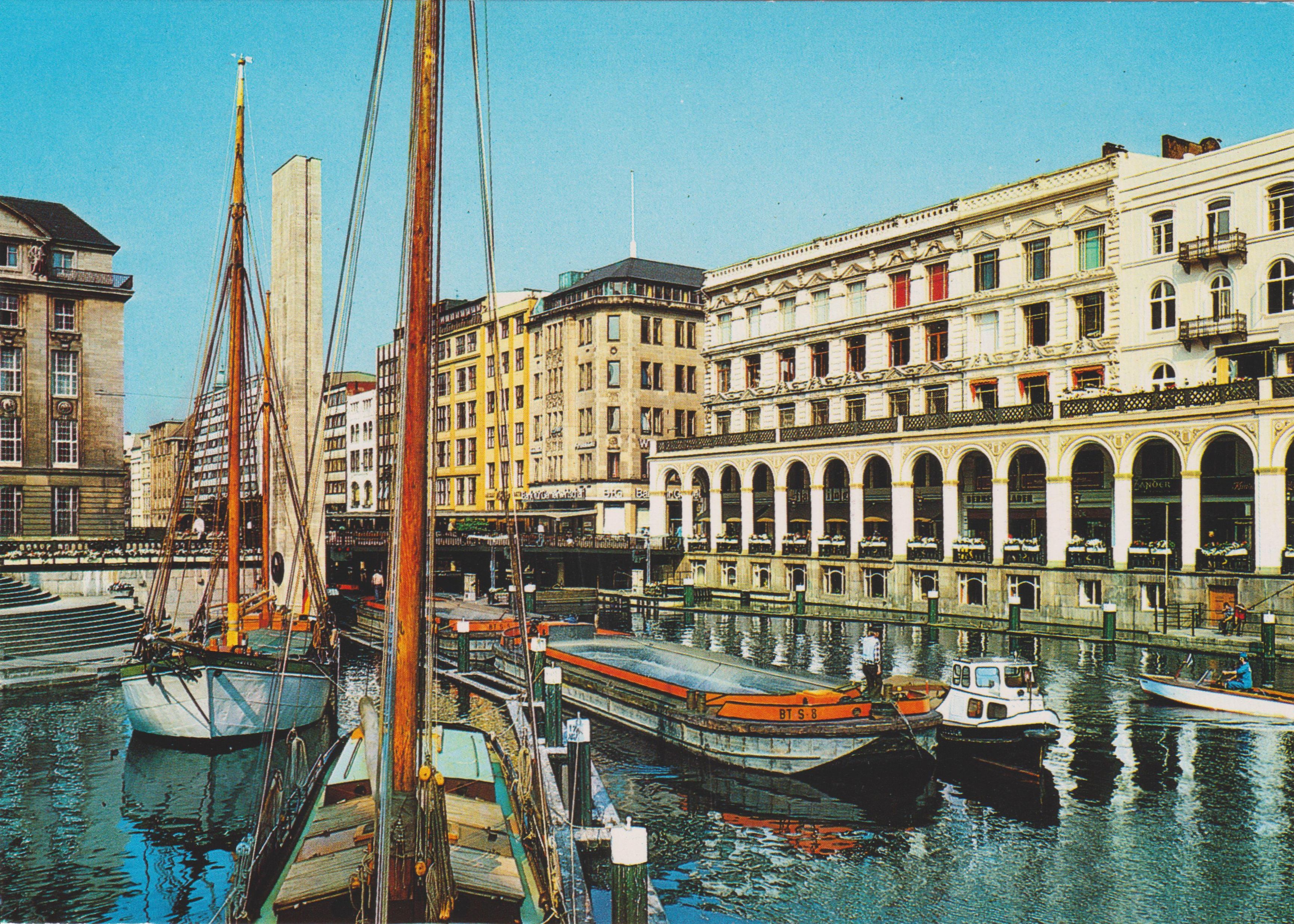 Die Schute liegt hier, zusammen mit der Schute BT S - 5, in der Kleinen Alster gegenüber den Alsterarkaden!