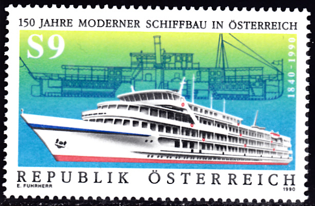 Auf einer Marke aus Österreich (MiNr 1999) wir das Kabinenfahrgastschiff "Anton Tschechow" gezeigt (vorne).