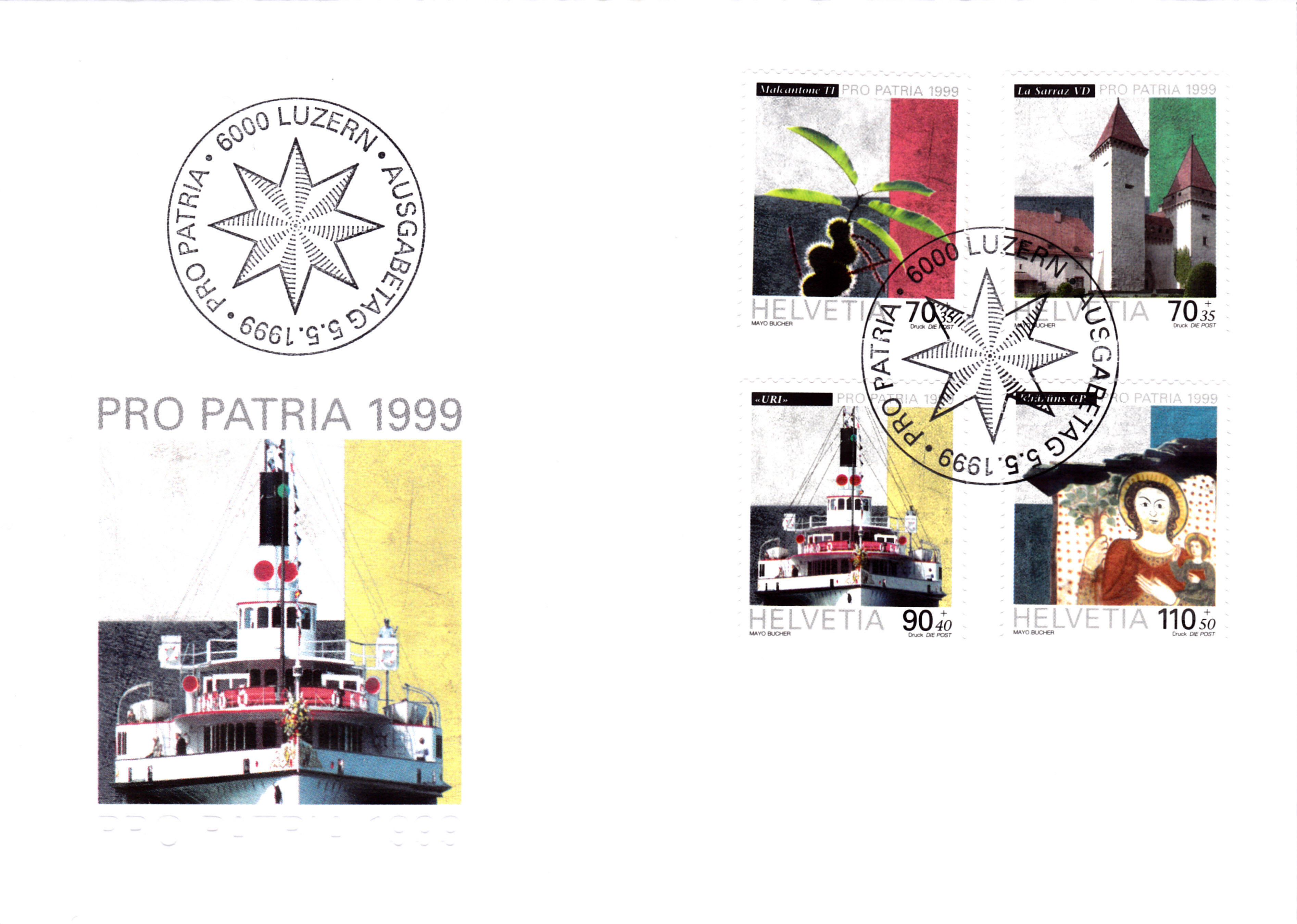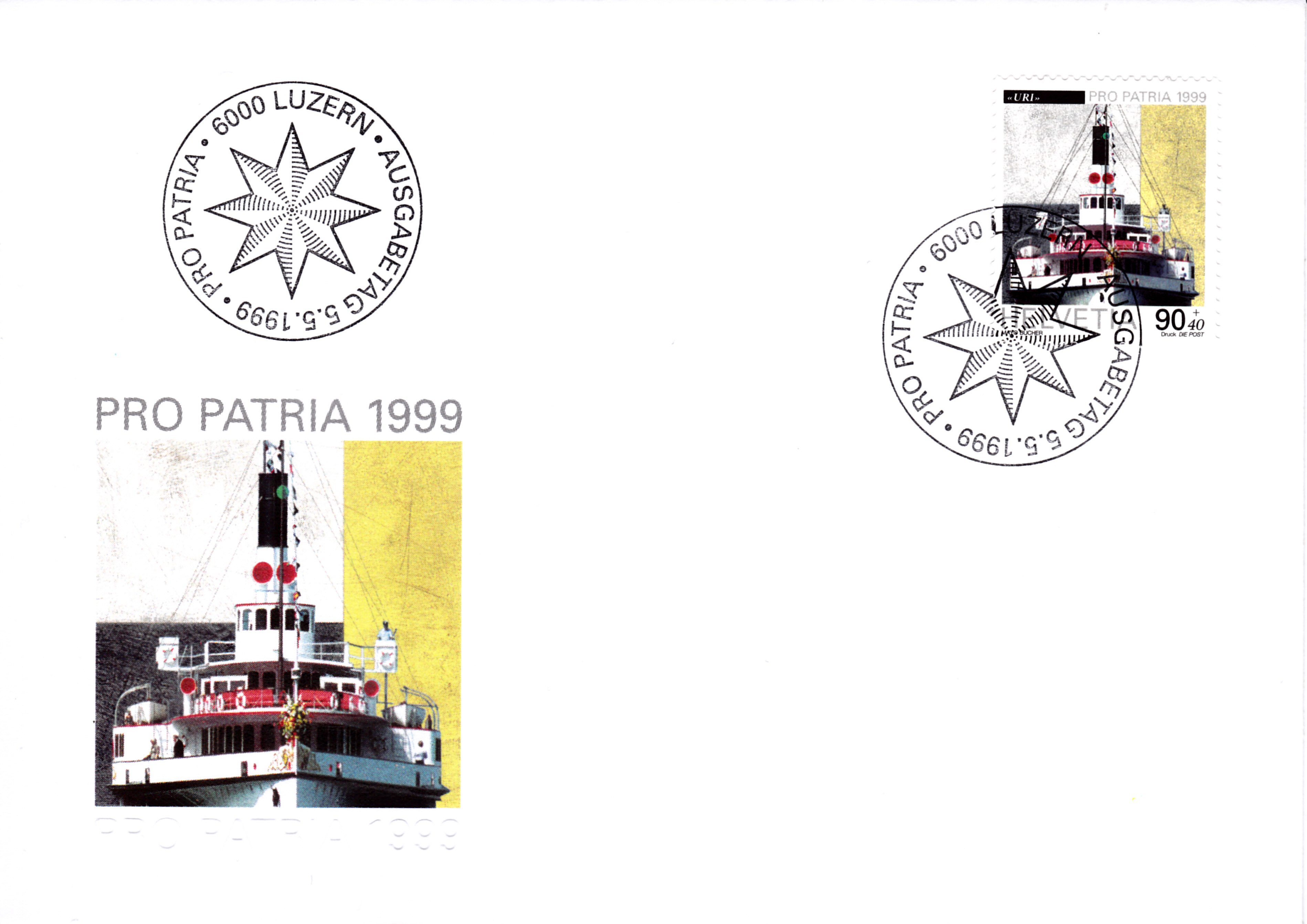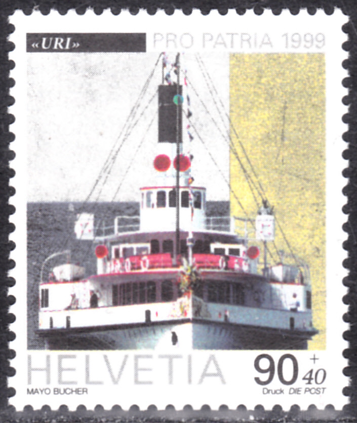 Auf dieser Marke der Schweiz (MiNr 1683) sehen wir den Raddampfer "Uri" auf dem Vierwaldstätter See.