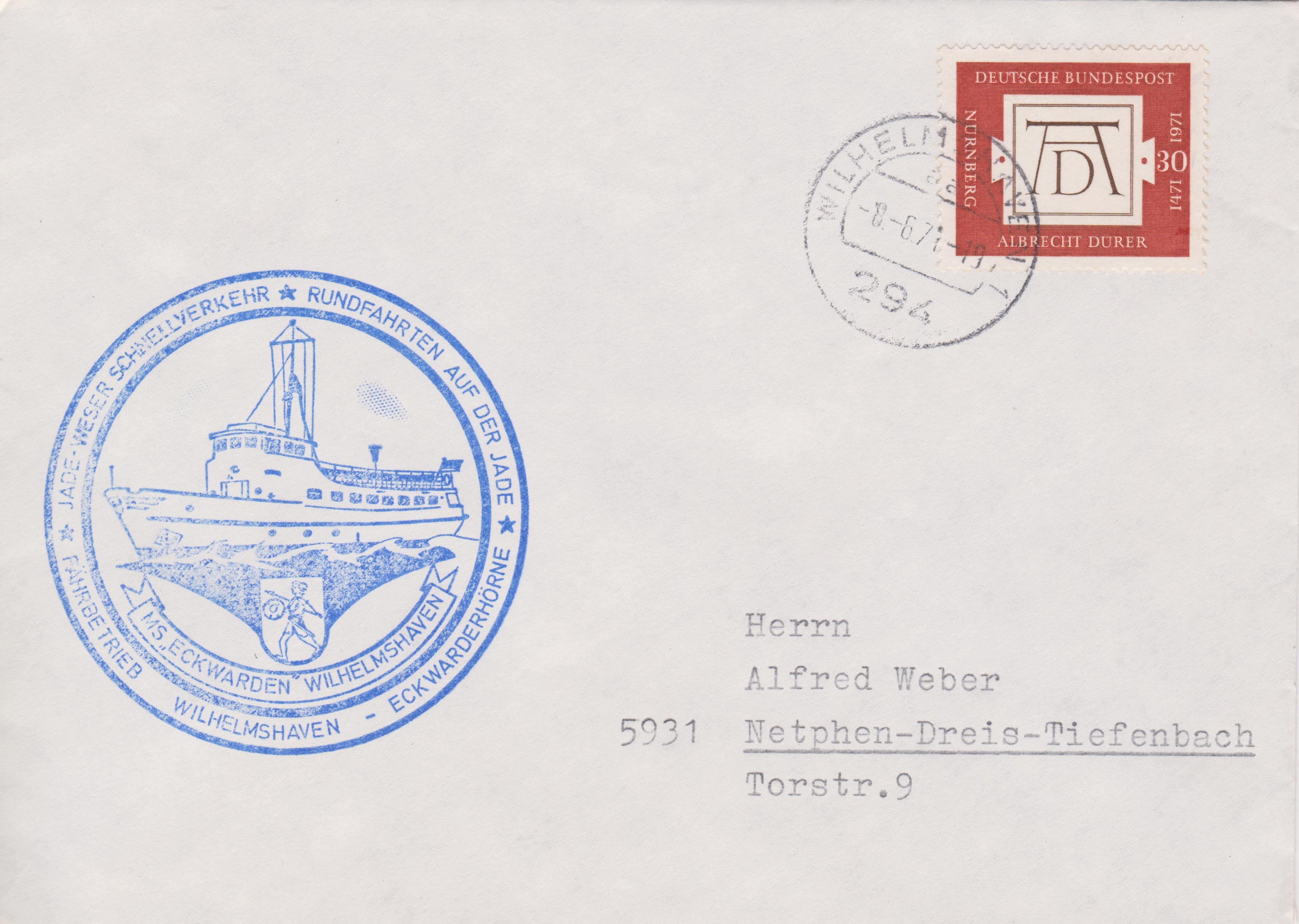 ECKWARDEN der Schiffahrtsgeselschaft Jade m.b.H., Wilhelmshaven, machte Seefahrten auf der Jade: