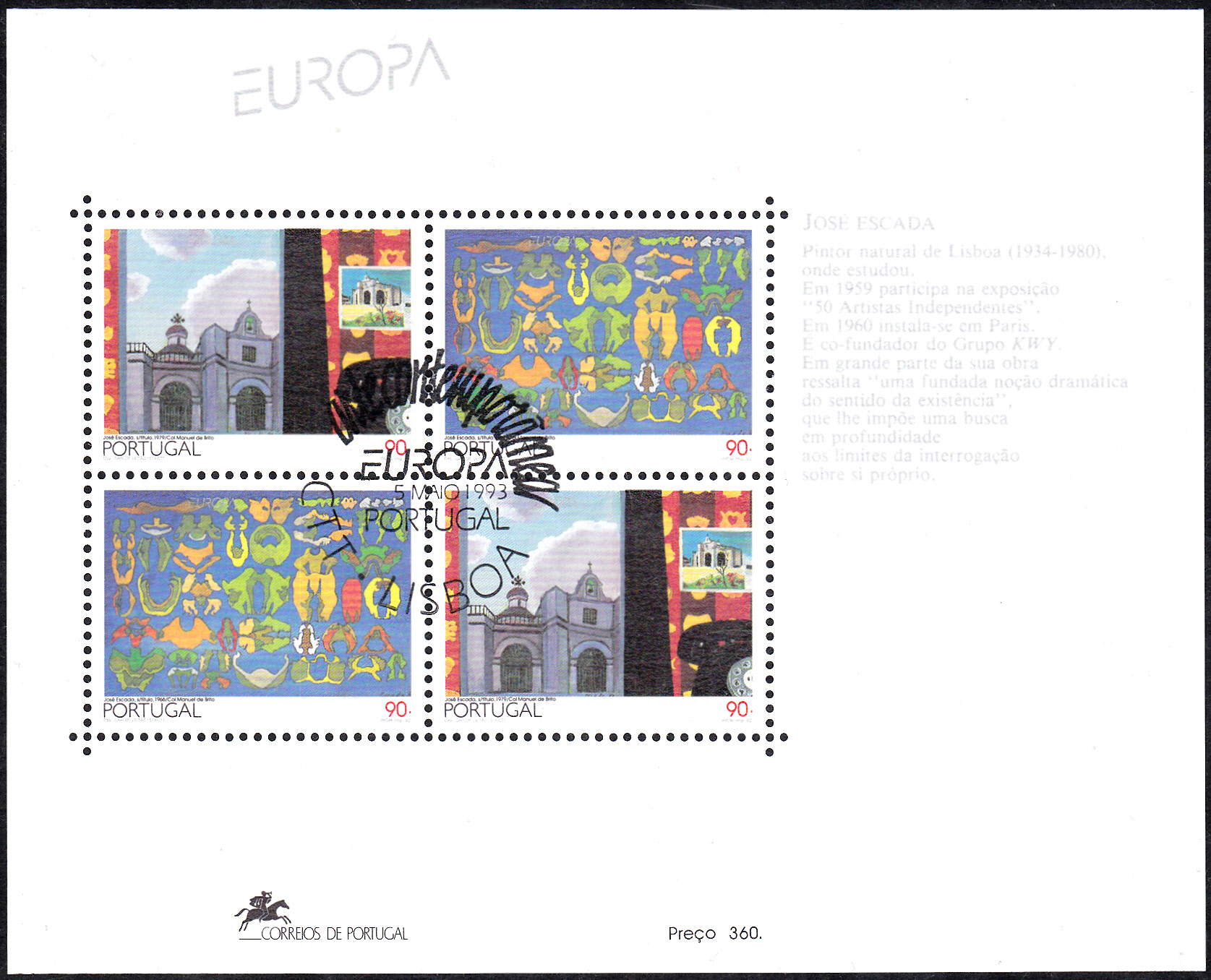 In Portugal ist die Europamarke MiNr 1959 zusammen mit einer weiteren Europamarke (MiNr 1960) mit einem Gemälde ohne Titel von José Escada (1934-1980) auch in einem Block erschienen. Die Auflage des Blockes betrug 150 000 Stück. Hier ein postfrischer Block: