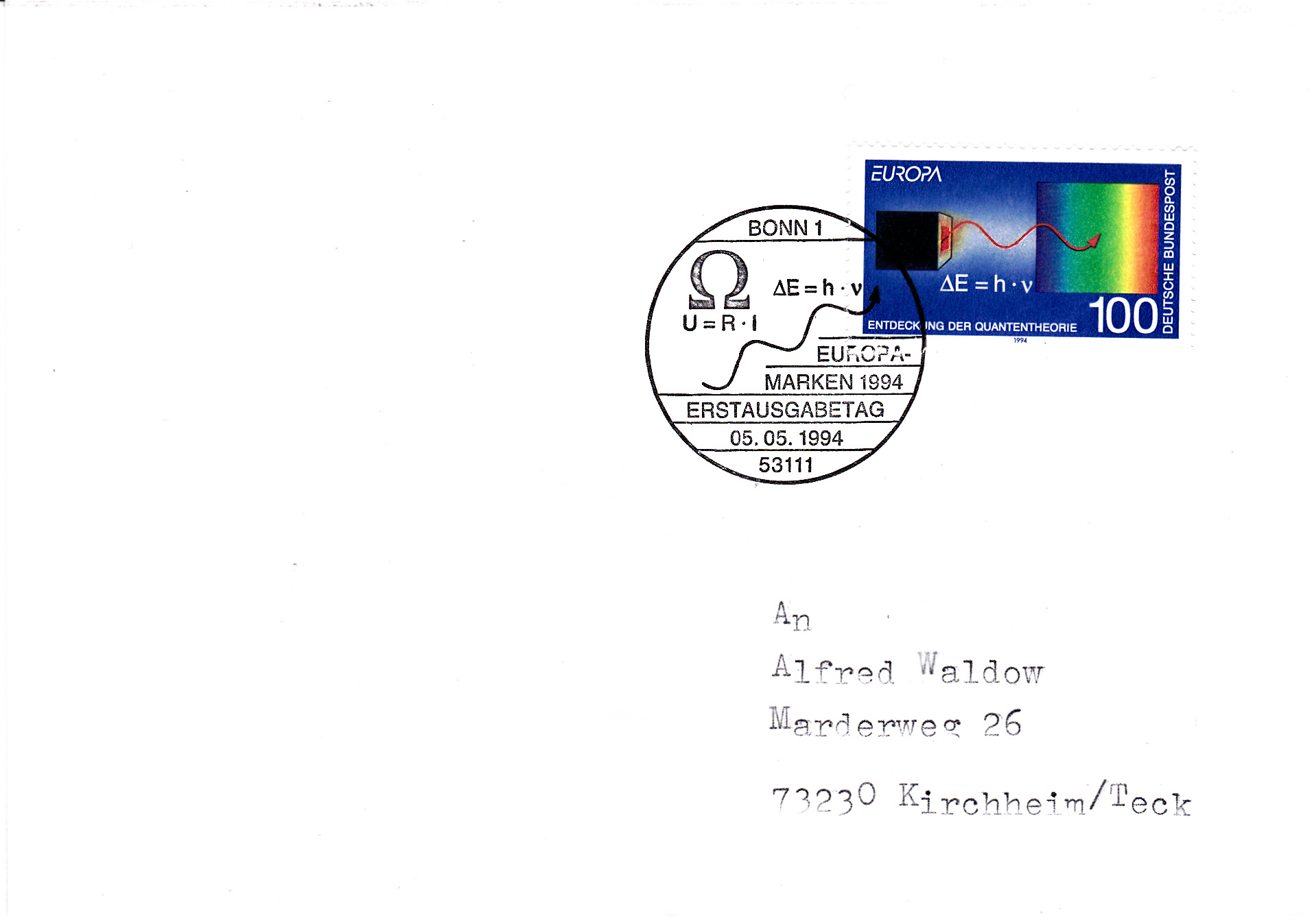 Einzelfrankatur der Europamarke 1994 zu 100 Pfennig mit Ersttagsonderstempel Bonn vom 5.5.1994.