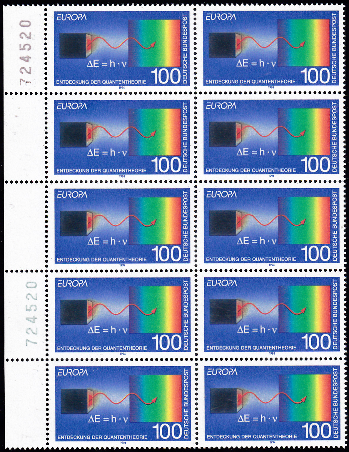 Zehnerblock vom linken Bogenrand mit Bogenzählnummer in zwei Farben auf dem Bogenrand.