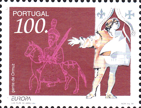 In Portugal erschienen die Europamarken 1994 zum Gemeinschaftsthema "Entdeckungen und Erfindungen" am 5. Mai 1994. Hier der Werte zu 100 Escudo mit der Abbildung eines Portugiesischen Ritter von der Insel Hormus im Persischen Golf (16. Jh.). Die Auflage dieser Marke betrug 500 000 Stück.