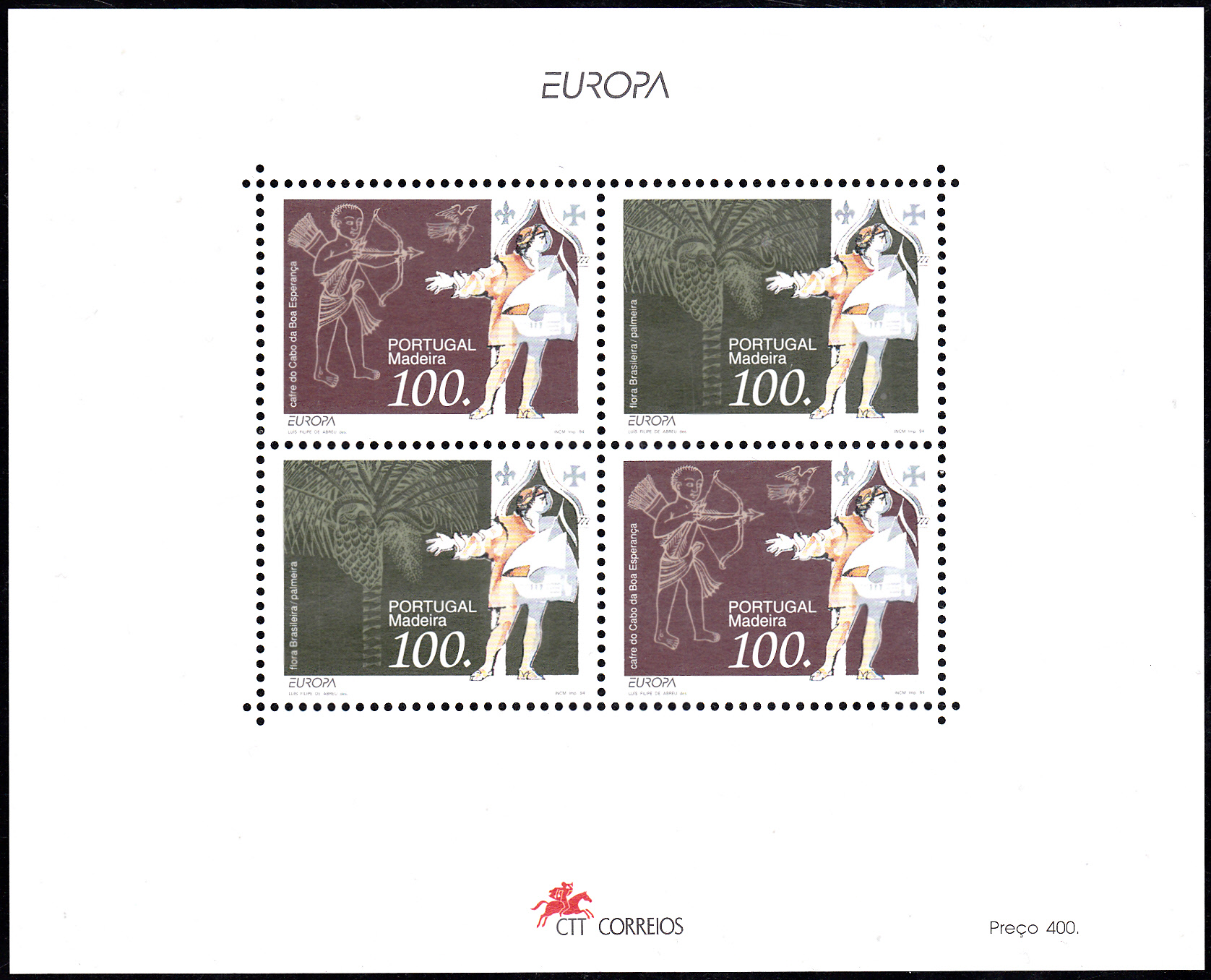 Foren-Übersicht Themen des Monats 2016 Thema des Monats Januar 2016 - EUROPA Europamarken 1993 bis heute unter der Trägerschaft der PostEurop 1994 Portugal Madeira MiNr Block 14 - 2 x 100 E + 2 x 100 E