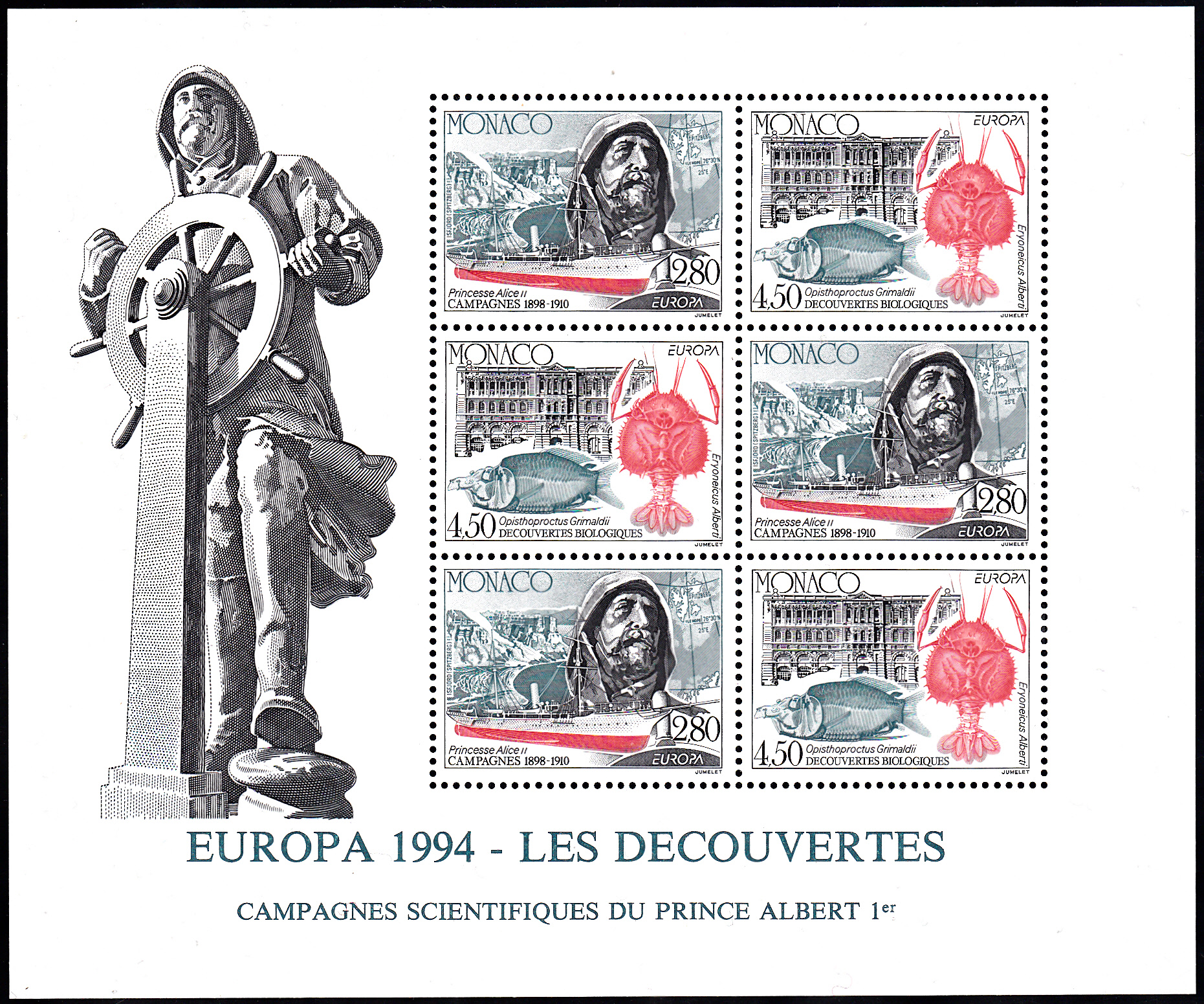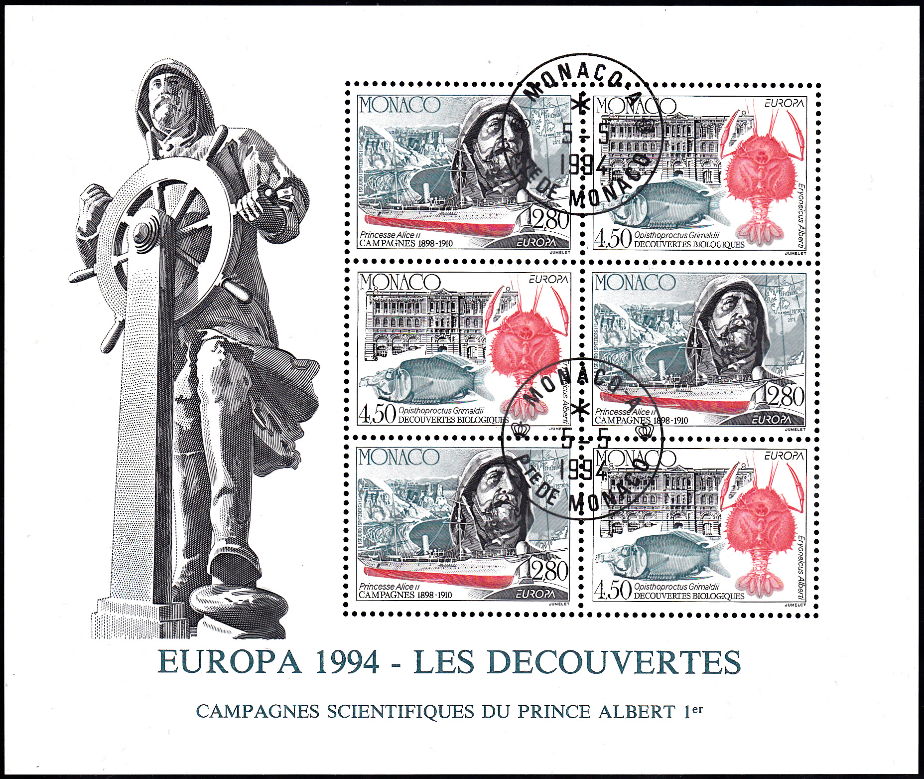 In Monaco sind die Europamarken 1994 auch in einem Block erschienen. Hier ein postfrischer Block: