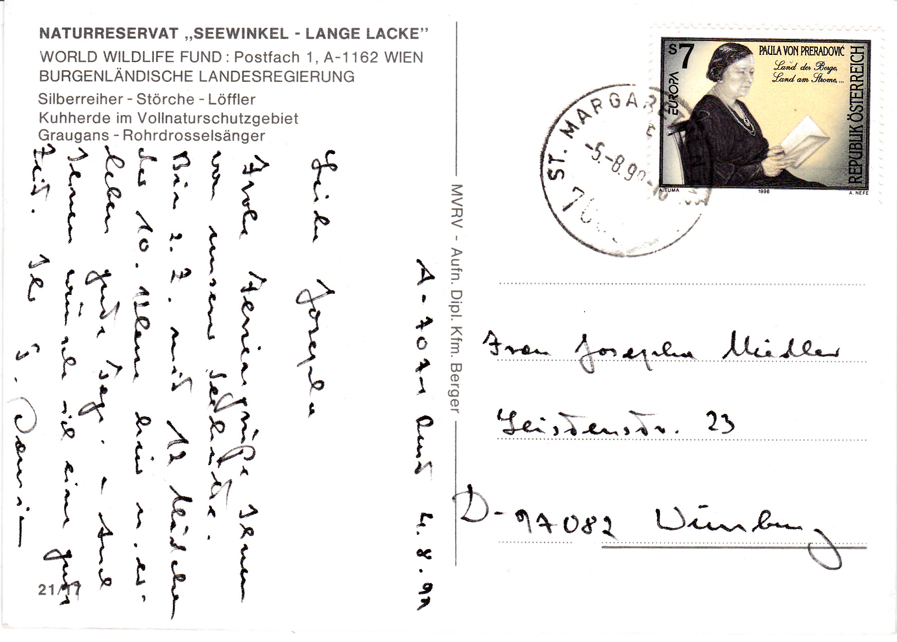 In Österreich erschien eine Europamarke 1996 am 17. Mai 1996 zum Gemeinschaftsthema "Berühmte Frauen". Hier diese Marke zu 7 Schillinge mit einem Porträt von Paula Preradović, einer österreichischen Lyrikerin und Schriftstellerin. Sie ist vor allem als Verfasserin des Textes der österreichischen Bundeshymne bekannt. Due Auflage der Marke betrug 2 700 000 Stück.