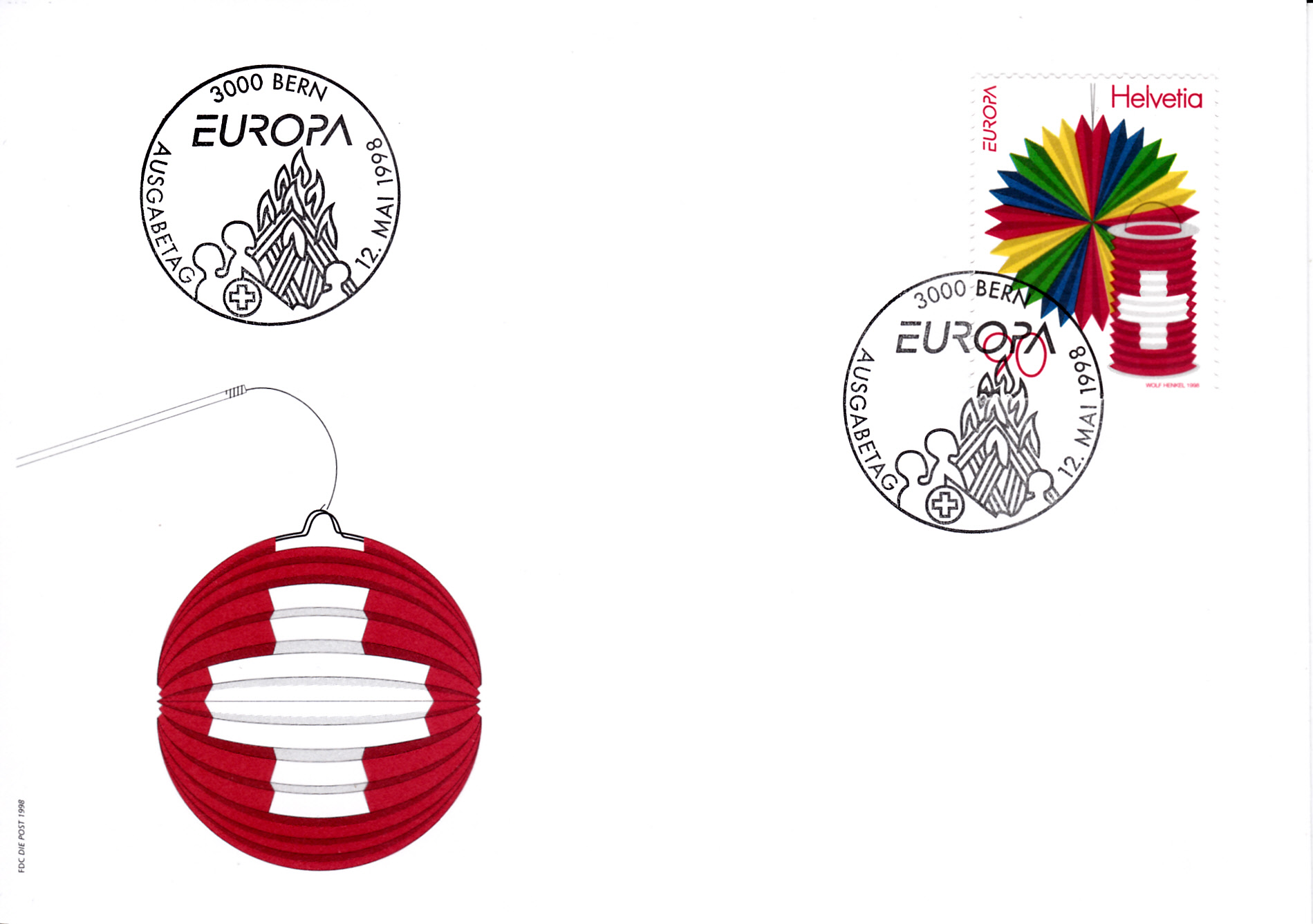 In der Schweiz erschienen die Europamarken 1998 am 12. Mai 1998 zum Gemeinschaftsthema "Nationale Feste und Feiertage". Hier die Marke zu 90 Rappen mit einer Darstellung zum Nationalfeiertag (1. August). Die Auflage betrug 7 731 000 Stück.