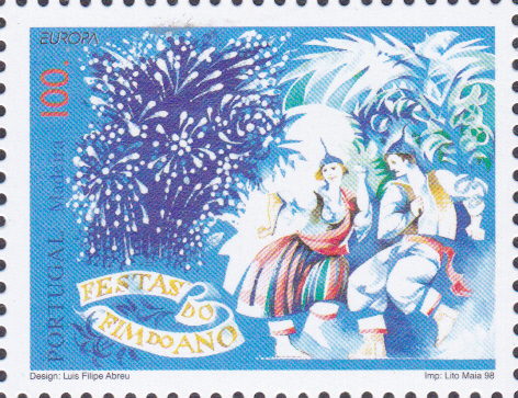 In Portugal Madeira erschien die Europamarke 1998 am 21. Mai 1998 zum Gemeinschaftsthema "Nationale Feste und Feiertage". Hier zeige ich die Marke zu 100 Escudo mit einer Darstellung zu Neujahr. Die Auflage betrug 500 000 Stück.