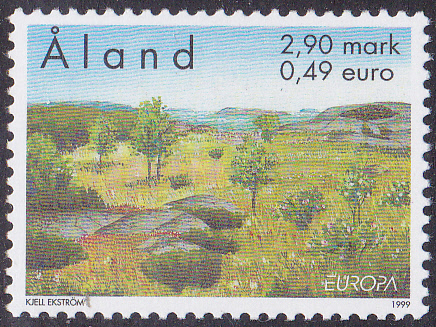 Auf den Alandinseln erschien die Europamarke 1999 zum Gemeinschaftsthema "National- und Naturparks" am 28. April 1999. Hier die Marke zu 2,90 Mark / 0,49 € mit einer Abbildung aus dem Naturschutzgebiet Idö auf der Insel Kökar. Die Marke erschien in einer Auflage von 500 000 Stück.