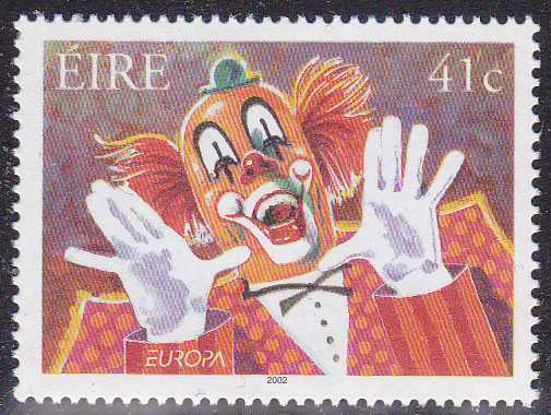 Die Europamarken 2002 zum Thema "Zirkus" erschienen in Irland am 14. Mai 2002. Hier die Marke zu 41 Cent mit der Abbildung eines Clowns. Die Auflage dieser Marke beträgt 1 000 000 Stück.