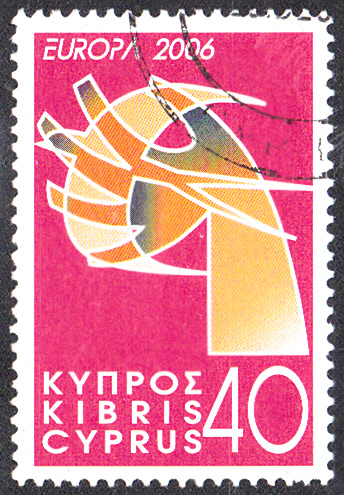 In Zypern erschienen die Europamarken 2006 zum Gemeinschaftsthema "Integration" am 4.Mai 2006. Hier die Marke zu 40 Cent mit dem Motiv "Hand und Friedenstaube".