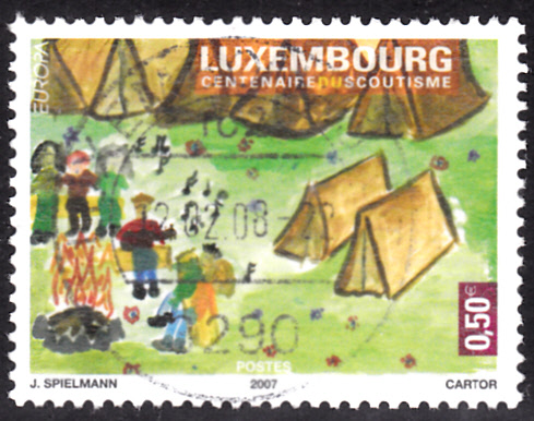In Luxemburg erschienen am 4. Mai 2007 die Europamarken zum Gemeinschaftsthema "Pfadfinder". Hier eine gestempeltes Exemplar der Marke zu 0,50 € mit der Abbildung eines Pfadfinderlagers. Die Auflage dieser Marke betrug 225 000 Stück.