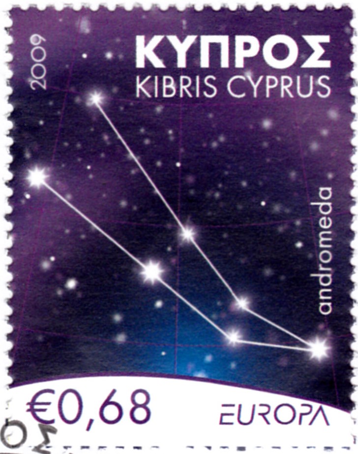 In Zypern erschienen die Europamarken 2009 zum Gemeinschaftsthema "Astronomie" am 4. Mai 2009. Hier zeige ich die Marke zu 0,68€ mit der Abbildung des Sternbildes Andromeda. Die Marke hatte eine Auflage von 70 000 Stück.
