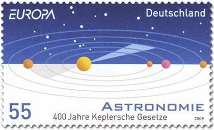 Bei der Deutschen Post erschien am 7.5.2009 eine Europamarke zum Gemeinschaftsthema "Astronomie. Hier diese Markle zu 55 Cent mit einer schematische Darstellung der Keplerschen Gesetze. Die Auflage der Marke betrug 8 800 000 Stück.