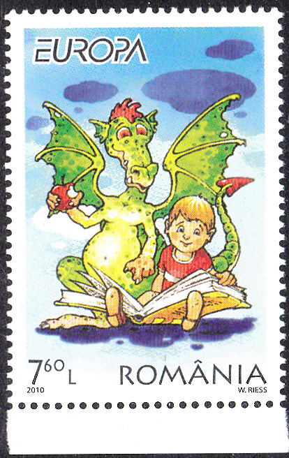 In erschienen die Europamarken 2010 zum Gemeinschaftsthema "Kinderbücher" am 6. Mai 2010. Hier die Marke zu 7,60 Lei mit einer Darstellung "Drache schaut lesendem Knaben über die Schulter". Die Auflage betrug 67 200 Stück. Die Marke ist in zwei verschiedenen Kleinbogen zu je 6 Marken und in zwei verschiedenen Blocks erschienen.