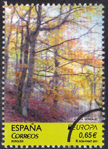In Spanien ist am 4. April 2011 zum Gemeinschaftsthema "Der Wald" eine Marke zu 0,65 € mit der Abbildung "Herbstlicher Buchenwald in der Provinz Segovia" erschienen. Die Auflage betrug 300 000 Stück. Hier eine Mustermarke dieser Ausgabe.